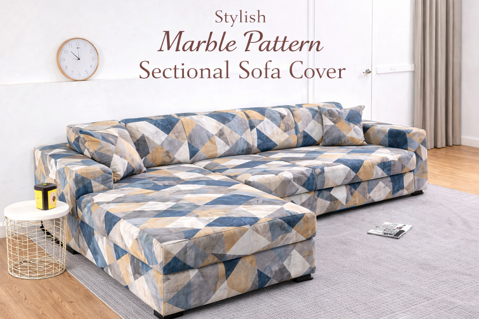 Quirky Hub Premium L-Shape Sectional Sofa Cover – Elegant Grey Diamond Pattern